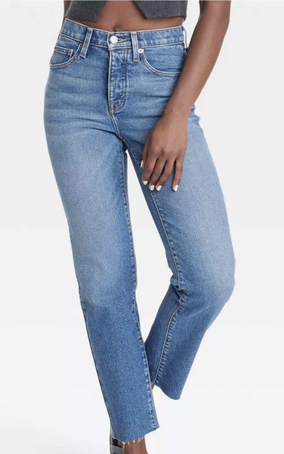 Picture yourself in cut-off cropped blue jeans that give off a relaxed yet polished vibe. Pair these with a classic white button-down shirt, a timeless staple that never goes out of style. To add a touch of rustic charm, we've included a straw rattan tote with elegant brown accent details—perfect for carrying all your essentials while maintaining a breezy, springtime feel.